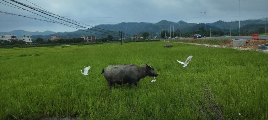 再晚一点,带胤延出去骑摩托,沿着新搞好的环罗浮山-南昆山公路走了几公里,一直开到麦屋。此时已近傍晚,气温更加舒适。