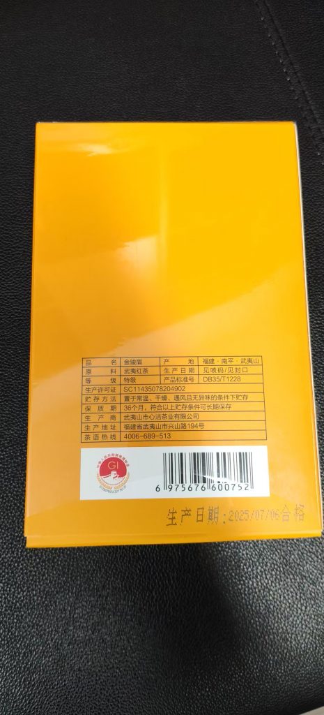 这款茶的特点是有金骏眉特有的甜香味,第一泡很清香,第二三泡浓郁,没有其他杂质异味,茶汤干净,每一泡都是独立包装,茶叶保持的非常干爽,缺点是不耐泡,一般不超过5泡。另外,包装和印刷都很好,是正规的茶厂的出品,例如有生产日期、执行标准、厂家信息、地理标志,不像很多茶叶,只有一个礼盒,没有任何的生产和厂家的信息。相比之下,这款茶叶会安全、可靠很多。
