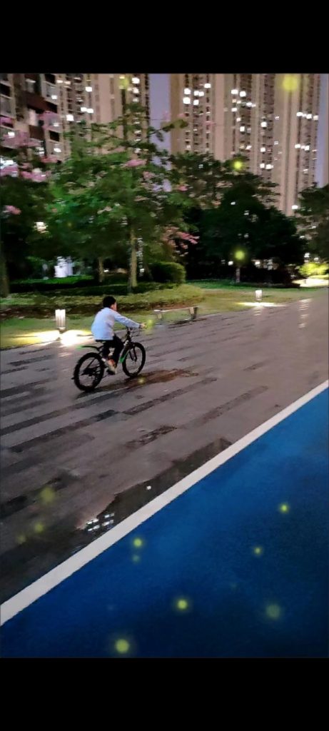 看着他们骑车的样子,感觉他们长得很快,可能很快就不会依赖、眷恋我们了吧。